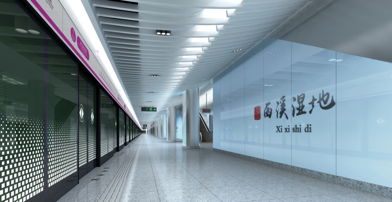 此站“蓮灘鷺影”為主題,水是西溪的靈魂和生命,其間水道如巷、河汊如網(wǎng), 園區(qū)內(nèi)蘆白柿紅、桑青水碧、竹翠梅香,冷、野、淡、雅,皆成天趣。
